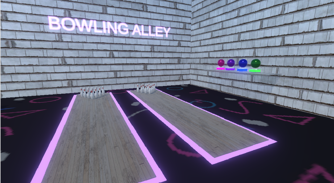 In the scene, two bowling lanes have been included, each accompanied by four balls with different weights.