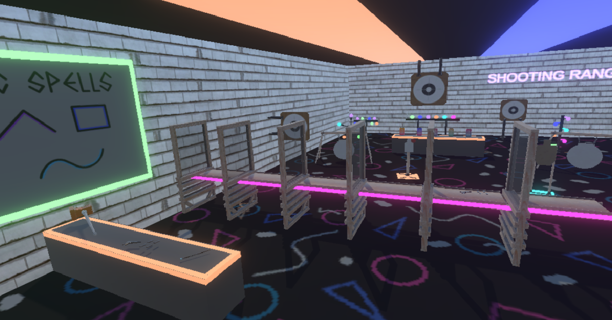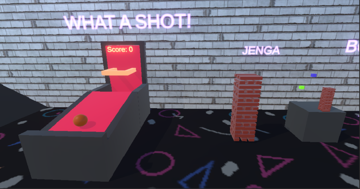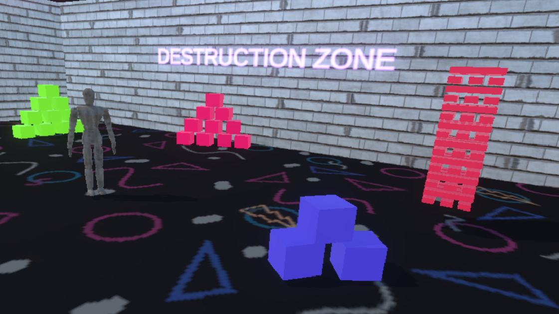 In this area of the stage, several interactable objects have been included for use with the mallet.
