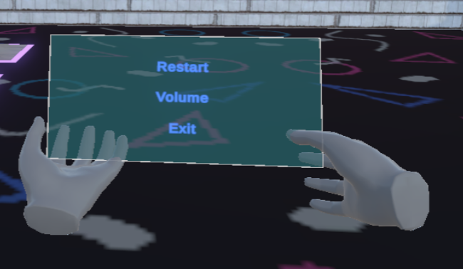 Here, you can adjust the volume for both the effects and background music, reset all objects to their initial positions, and exit the game.